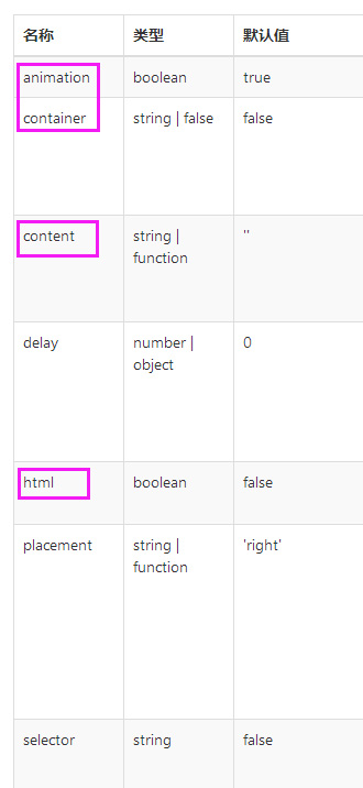 根据手册给定的参数表,我们需要这几项,图中被圈中的参数。其中animation淡入淡出,container弹出层所在的页面元素。content弹出内容,html弹出层中嵌入html代码。图二中content参数请自行修改,我这个是ThinkPHP的模版调用。