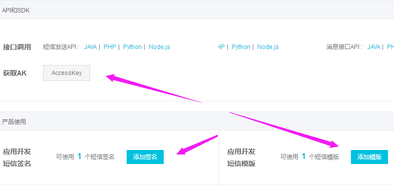 登录云通信平台控制台申请AccessKey,并添加短信签名和短信模版。关于短信签名和短信模版在上一篇文章中已经提到过,就不赘述了。(https://www.anji66.net/article/id/37.html)AccessKey建议使用子账号。根据平台提示操作即可。